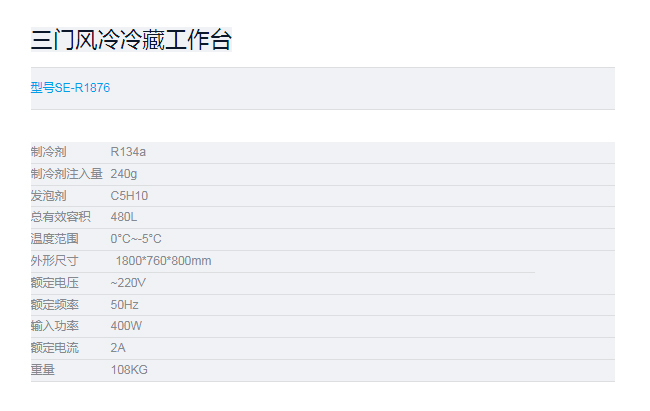 SE-R1876三门风冷冷藏工作台