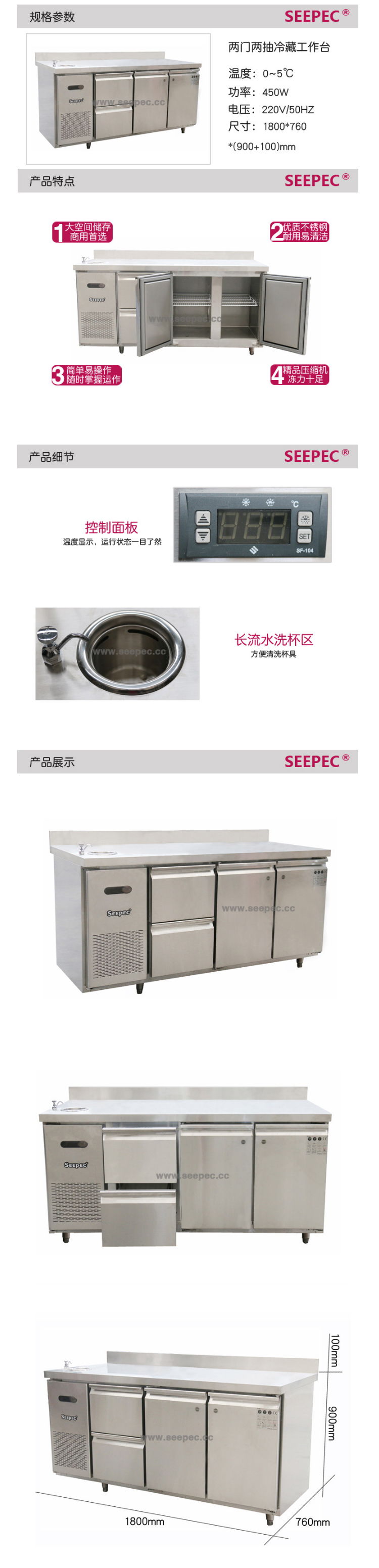 四抽冷藏操作台 不锈......