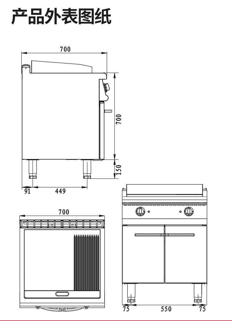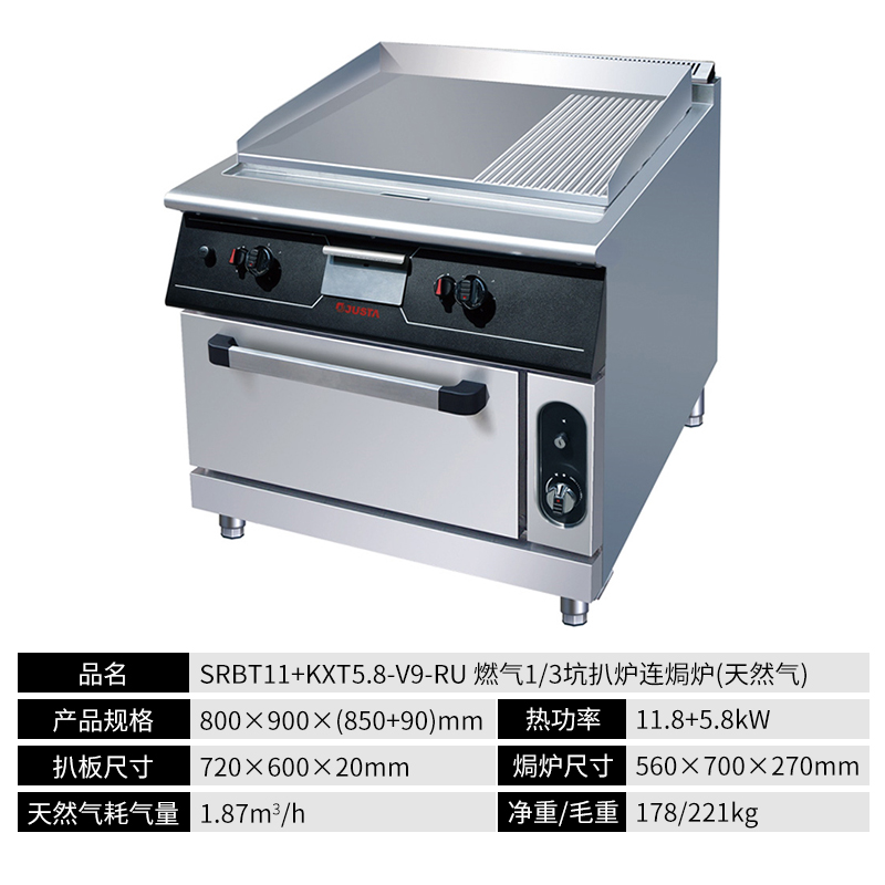 立式燃气铁板炉连焗炉 商用铁板烧扒炉