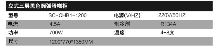 希派克 立式三层黑色圆弧蛋糕柜SC-CHB1-900